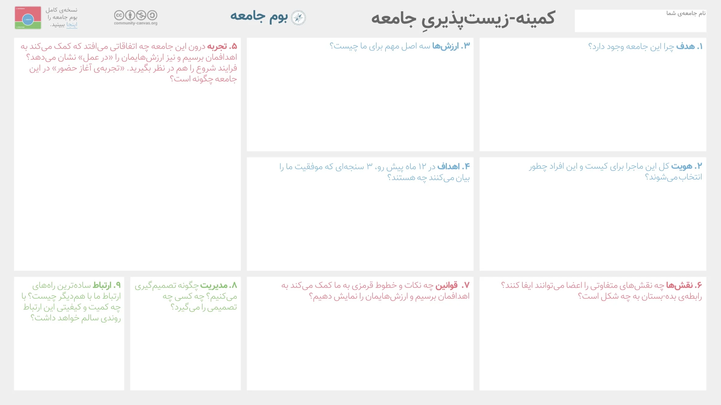 We worked together with a wonderful team of volunteers to translate the canvas. Here you can find all translations. Want to translate it into your language? Find out more here. The translated Community Canvas is published under the same creative commons license as the English Canvas, more info on that here.